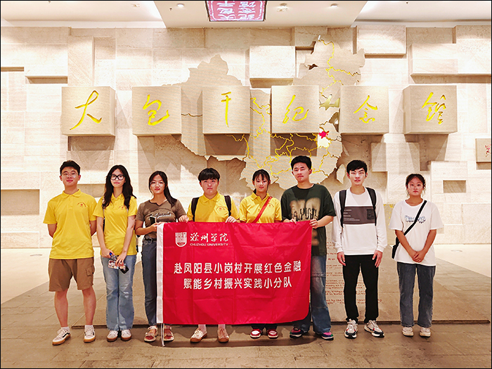 为深入学习宣传贯彻党的二十大精神,弘扬“改革创新,敢为人先”的小岗精神,凝聚奋进新时代的强大力量,增强当代大学生的社会责任感,七月中旬,澳门37000Cm威尼斯数学与金融学院蔚然“凤还巢”小分队走进中国改革第一村——凤阳县小岗村,开展以“红色金融赋能乡村振兴”为主题的调查研究,为乡村振兴贡献青春力量。