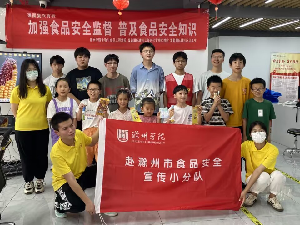 民以食为天,食以安为先。为增强社区居民食品安全意识,倡导健康生活理念,近日,生物与食品工程学院赴滁州市食品安全小分队分别在滁州市发能社区国际城、碧桂园开展“加强食品监督,普及食品安全知识”的科普宣讲实践活动。