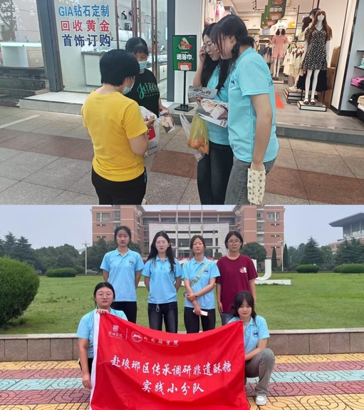 走入群众中,宣传“酥糖”史。实践队员们前往滁州市天长路一带,向过路的群众派发宣传单,宣传酥糖发展史。过程中热情地介绍琅琊酥糖,分发酥糖,邀请试吃体验并且采访感受。最后队员们将收集来的群众的试吃感受和意见整理汇总,进行思考讨论,将探究的产品创新意见提供给各琅琊酥糖销售店。