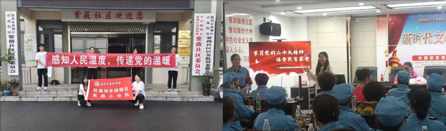 进社区,“滴灌式宣讲”有声有色,让党的思想化作“堂前燕”飞入寻常百姓家。在滁州市紫薇社区,金融学院大学生红色理论宣讲实践小分队一行7人,以“学习党的二十大精神,体会民生养老问题”为主题开展理论宣讲与志愿服务活动。队员们在实地走访社区、线上线下问卷调查的基础上,明确理论宣讲与实践服务的工作重点,广泛收集资料并精心制作宣进PPT,最后,通过社区集中宣讲、上门志愿服务等形式圆满完成了本次实践活动。实践小分队成员在社区工作人员的陪同下,入户慰问了一些独居老人及特殊家庭,声情并茂为老人们讲解党的好政策、传播党的新思想、讲述时代故事,与老人们谈心交流,并以大学生的实际行动为老人们送去了温馨。