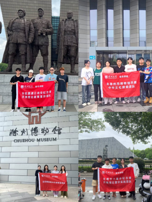 为进一步让同学们在“三下乡”社会实践活动中深入学习革命前辈的光辉事迹,进一步感受到共产党人不怕牺牲、艰苦奋斗的精神风范,在实践中认识国情、奉献社会,音乐学院四支院级团队分赴渡江战役纪念馆、滁州市博物馆、侵华日军南京大屠杀遇难同胞纪念馆等地参观学习。同学们了解各地区的革命历史,通过各种现代影像资料、多媒体手段以及互动项目,切身感受到革命先烈们坚定的共产主义信仰以及献身革命的高尚境界。