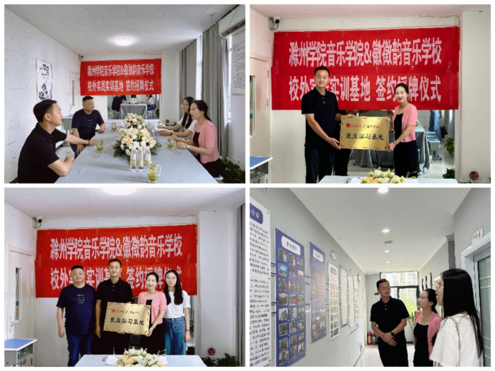 7月29日,音乐学院党委副书记、副院长高静一行赴宿州徽徵韵音乐学校调研,签订就业实习基地协议并为基地授牌。
