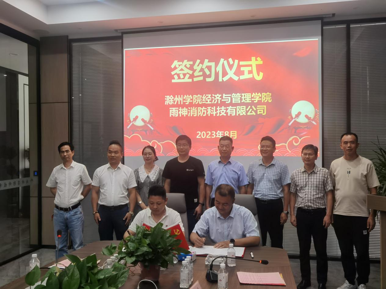 8月22日,经济与管理学院与雨神消防科技有限公司校企合作签约仪式在雨神消防科技有限公司举行,经管学院院长王琦,来安县经开区经济运行局局长李祥喜、副局长袁泉、企业帮办服务中心主任郭进,雨神消防总经理汪英前、副总经理王可民及公司行政部、生产部、营销部、财务部等部门负责人共同参加签约仪式。