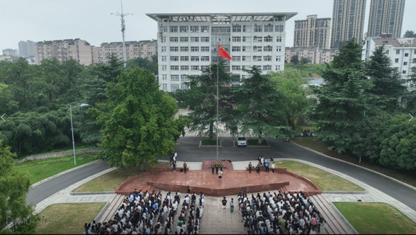 上午6时40分,庄严的升国旗仪式正式开始。随着“正步走”的口令声,护旗队队员昂首挺胸,迈着整齐的步伐,护卫着国旗走向升旗台。伴随着雄壮的国歌声,升旗手高高扬起国旗,鲜艳的五星红旗冉冉升起,迎风飘扬。全体师生面向国旗,齐唱国歌。