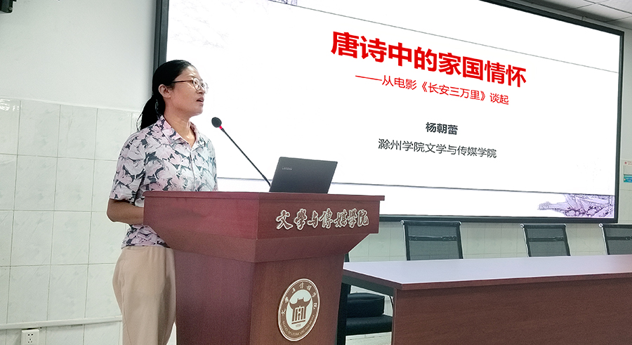杨朝蕾教授在第一期“文传论坛”中,以《唐诗中的家国情怀》为题,以正在热映的电影《长安三万里》切入,讲述了唐诗中的爱国主义思想、心怀天下的情怀、家国同构的共同体意识、仁爱之情的孝亲思想及其经典作品。