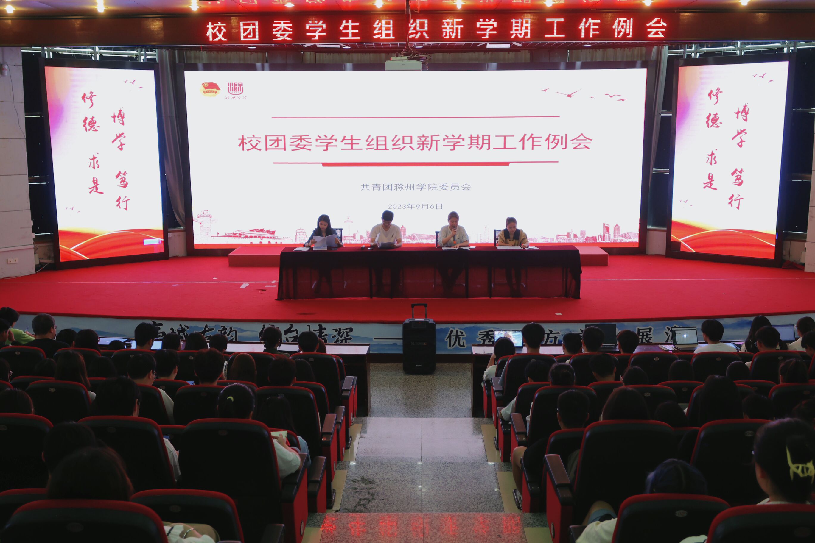9月6日,校团委召开直属学生组织新学期工作例会,校学生会、团委直属部门、琅琊校区共青团事务中心、大学生社团联合会、青年志愿者总队和大学生国旗护卫队等学生组织全体学生干部参加会议。