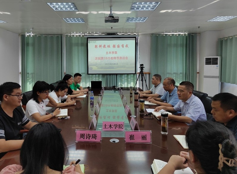 9月8日,土木学院召开庆祝第39个教师节教师代表座谈会。院领导和教师代表欢聚一堂,围绕“躬耕教坛 强国有我”主题,畅谈为师育人之道,共谋学院高质量发展之路。