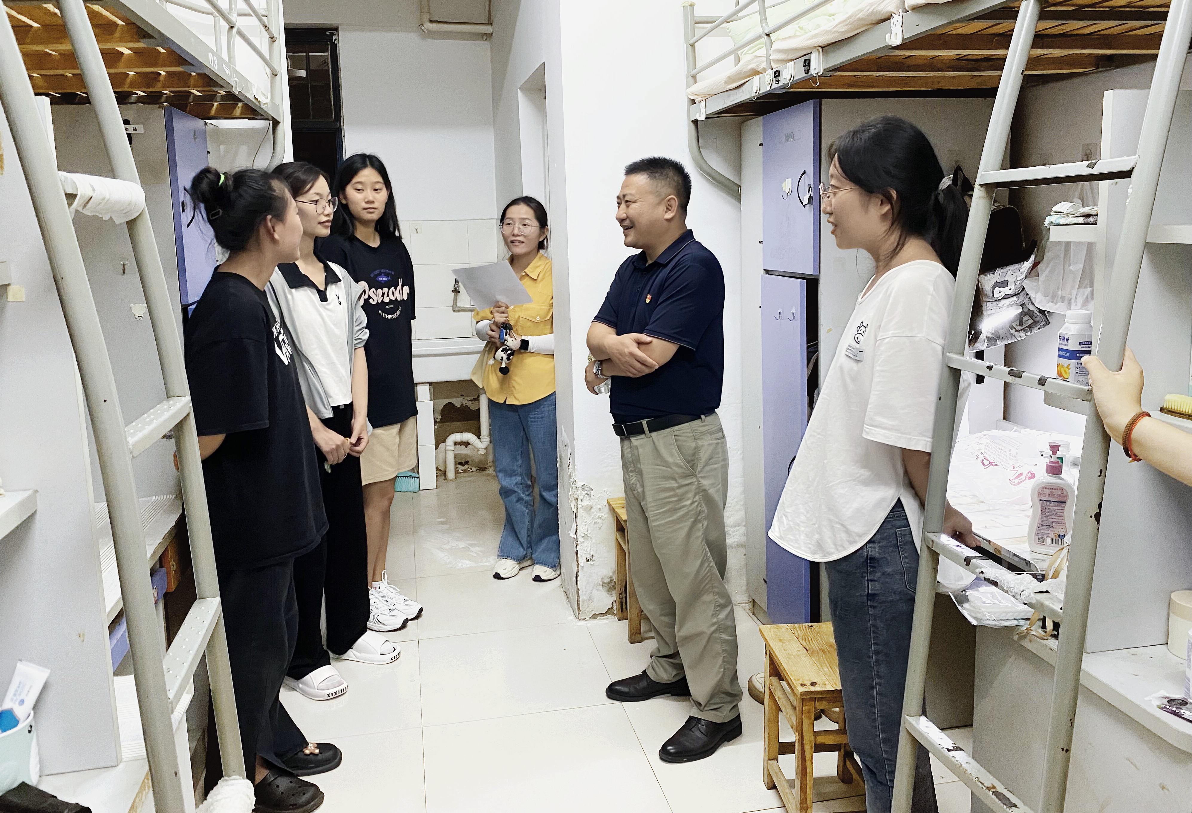 9月8日晚和9日上午,文学与传媒学院党委书记王诗根带领新生班主任深入学生宿舍走访看望2023级新生,送去学院的关心和问候。