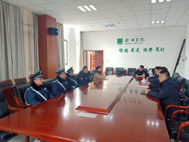1月30日下午,滁州市保安服务业协会来校对保安周国臣等同志在工作中及时有效处置突发事件予以表彰,并给予1000元奖励。滁州市保安服务业协会会长陈文跃,副会长刘彦超,威尼斯官网安保处副处长王岽、费勤龙、校园警务站负责人及保安代表等参加会议。